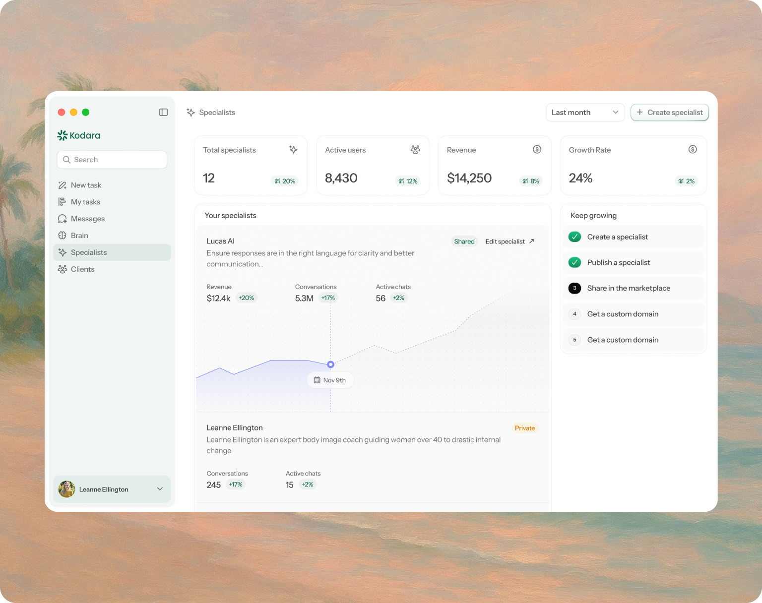Custom "AI brain" trained on your knowledge and expertise, pulled directly from your existing platforms
